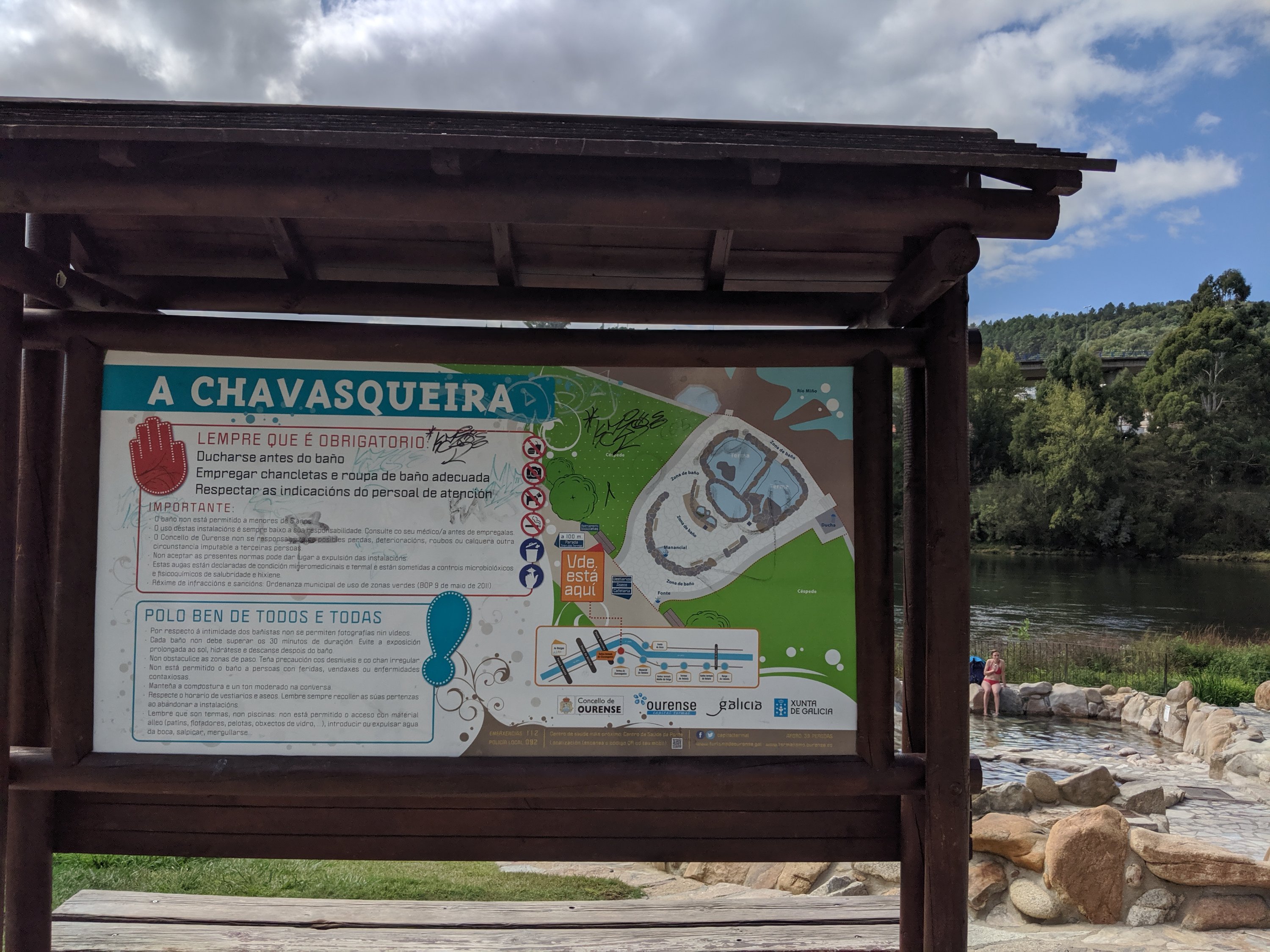 This morning the three of us left Madrid early in the morning to take the 4.5 hour train to Ourense, the starting point for our walk. There are a few natural hot springs and an old Roman thermal bath (Burgas) in the city that looks really interesting.